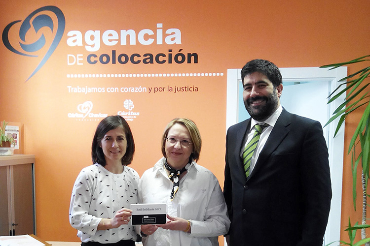 Recientemente, Diego Saugar, director de zona Rioja Oeste, y Ana Carmen Medrano, directora de la Oficina 7507 de Logroño, entregaron a Inmaculada Espila, directora del área Sociolaboral de Fundación Cáritas Chavicar, la placa conmemorativa Bankia Red Solidaria.