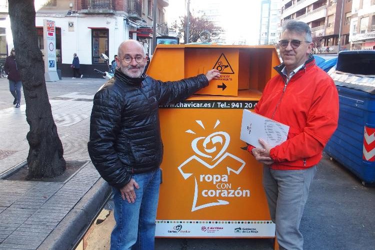 El concejal de Medio Ambiente del Ayuntamiento de Logroño, Jesús Ruiz Tutor, y el director gerente de Fundación Cáritas Chavicar, Jesús Pablo Romero, han valorado la recogida selectiva de textil a través de los contenedores instalados en la ciudad de Logroño, objetivo en el que colaboran ambas entidades. Durante estos días se están instalando nueve nuevos contenedores, con lo que la capital riojana cuenta actualmente con 35 contenedores destinados a este fin.