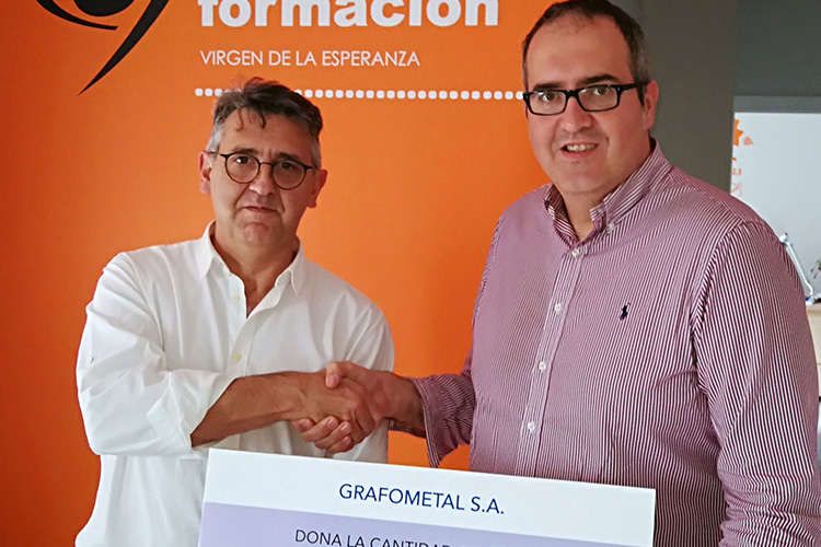 Grafometal, compañía referente en Europa en impresión UV sobre hojalata, ha renovado su apoyo a Fundación Cáritas Chavicar con un donativo de mil euros. Manuel Navajas, director de Recursos Humanos de la empresa riojana, entregó este donativo a Jesús Pablo Romero, director gerente de la fundación, en una reciente visita al Centro de Formación Virgen de la Esperanza.