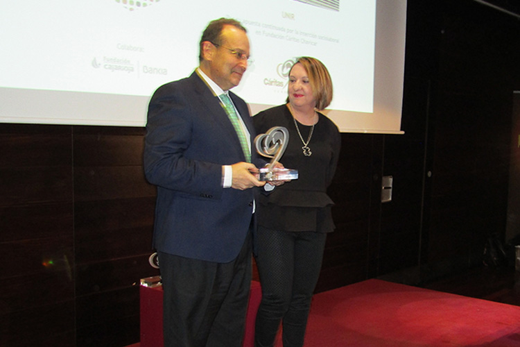Por su parte, la UNIR ha sido galardonada desde el Área Sociolaboral. En enero de 2015, la entidad educativa y Fundación Cáritas Chavicar firmaron un convenio para favorecer la entrada en el mercado laboral de personas desempleadas. A través de este acuerdo, la UNIR ofrece un paquete educativo on line gratuito a los participantes del proyecto “Juntos por el empleo”. Tres años después, el convenio sigue en vigor y 141 personas desempleadas de colectivos socialmente vulnerables han recibido formación. Gracias a esta mejora en su capacitación profesional y personal, 44 participantes del “Itinerario de inserción” han encontrado un empleo.