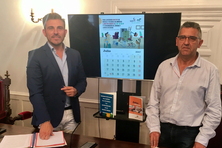 El concejal de Limpieza y Medio Ambiente del Ayuntamiento de Calahorra, Óscar Eguizábal, y el director-gerente de la Fundación Cáritas Chavicar, Jesús Pablo Romero, han presentado el balance del servicio de recogida de objetos voluminosos durante el año 2016 y los primeros meses de 2017.